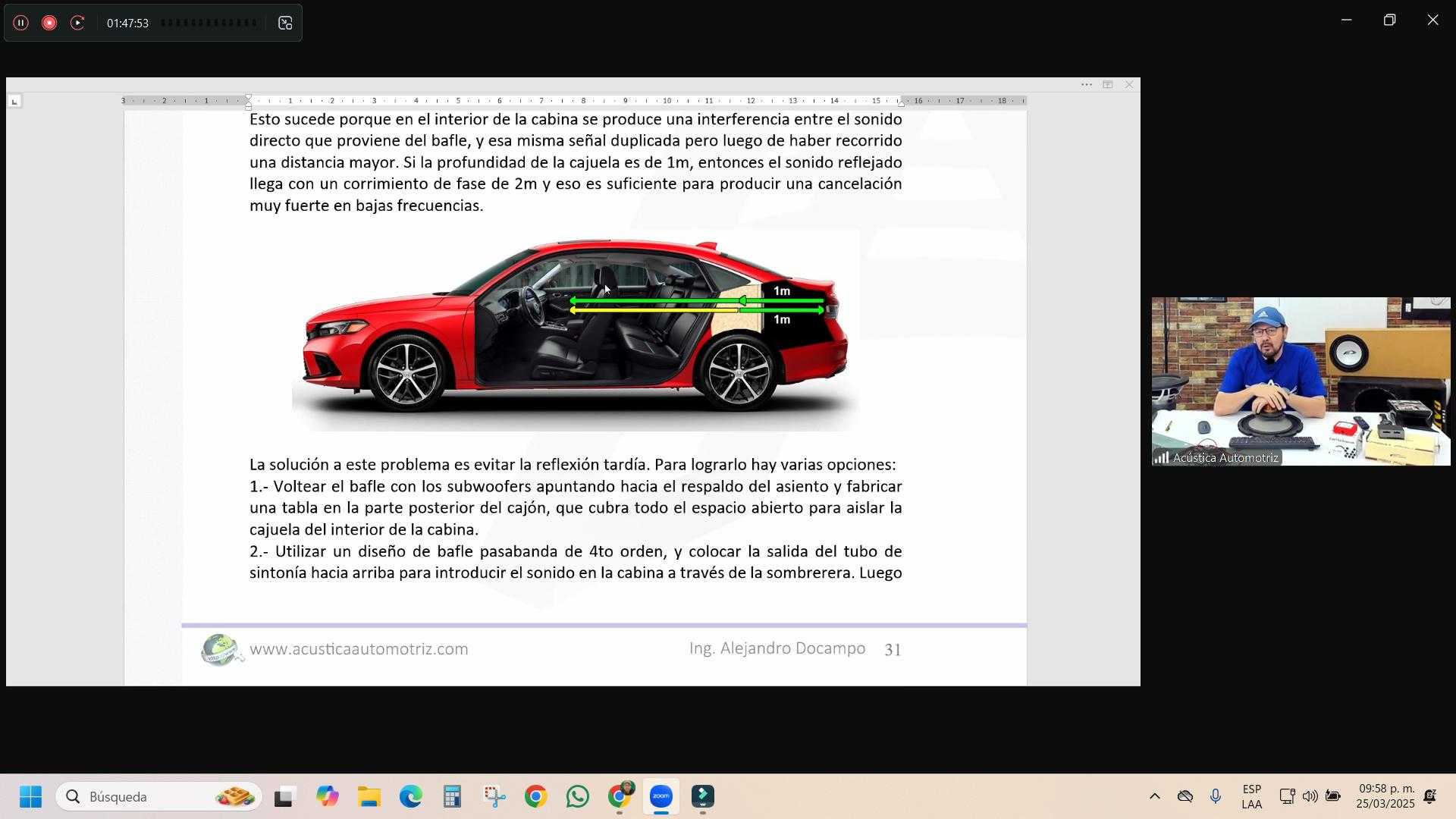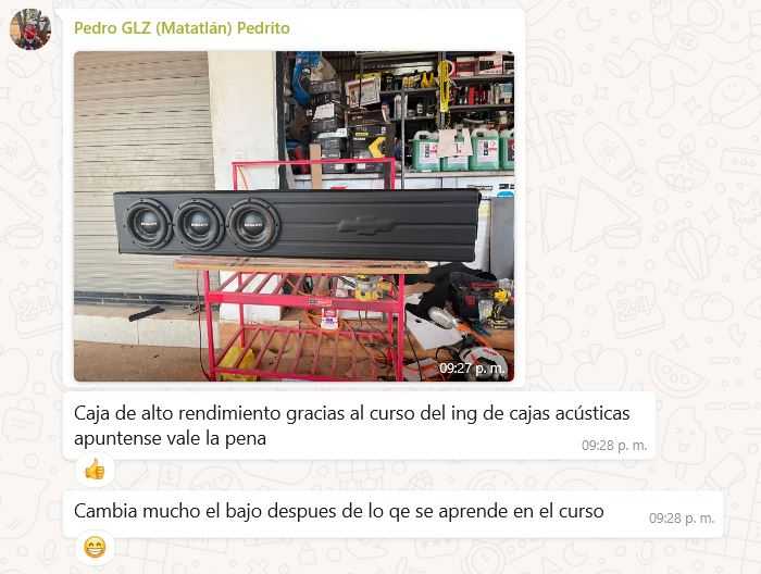 Nivel Intermedio. El propósito es que el alumno comprenda que un buen resultado solo se obtiene cuando diseñamos en función del espacio disponible en el vehículo, y dejamos que el espacio determine el tamaño y la cantidad de subwoofers que producirán un verdadero sonido potente. Aprenderá a elegir la frecuencia de sintonía; a conseguir sonidos fuertes con subwoofers pequeños; a controlar el desplazamiento del cono; a interpretar parámetros, diseñar cajas selladas, porteadas y pasa banda, el uso de software Winisd y Term Pro, ejercicios de práctica de cajones reales.